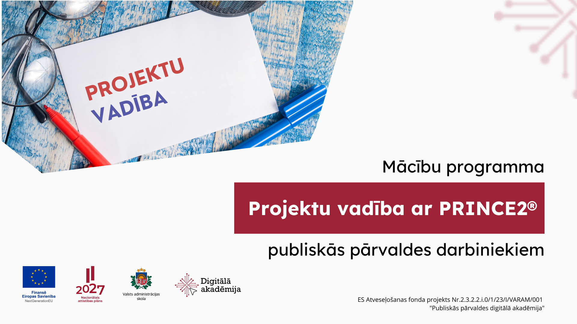 Aicinām pieteikties mācību programmai "Projektu vadība ar PRINCE2®". Pamata un praktiķa līmeņa mācības ir izstrādātas, lai pilnveidotu publiskajā pārvaldē nodarbināto profesionālās prasmes un padziļinātu izpratni par strukturētu, starptautiski atzītu projektu vadības pieeju.