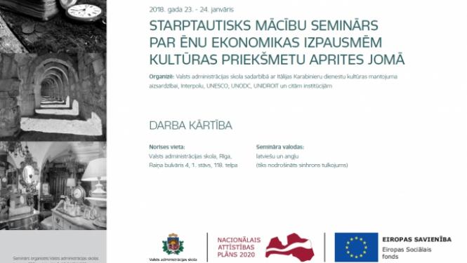 23. un 24. janvārī Valsts administrācijas skola sadarbībā ar Interpolu, itāļu Karabinieru dienestu, UNESCO, UNODC, UNIDROIT u.c. institūcijām organizē mācību semināru “Starptautisks mācību seminārs…