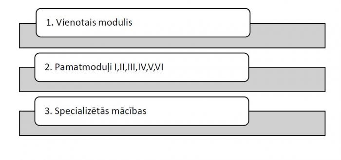 Projekta ietvaros izstrādāti septiņi jauni mācību moduļi, no kuriem pirmais modulis aptver visu projekta mērķgrupu un nosaukts par Vienoto moduli, bet seši Pamatmoduļi veidoti katrs ar savu mācību stratēģiju, mācību programmu un tās ietvaros metodiski dažādotiem, un uz atšķirīgu priekšzināšanu līmeņiem orientētiem, tematiski izstrādātiem kursiem (ievadkurss, pamatkurss, padziļinātais kurss, darbnīcas, treniņi, simulācijas, lietišķās spēles u.c.) dažādām amatu grupām un profesionālās hierarhijas līmeņiem.